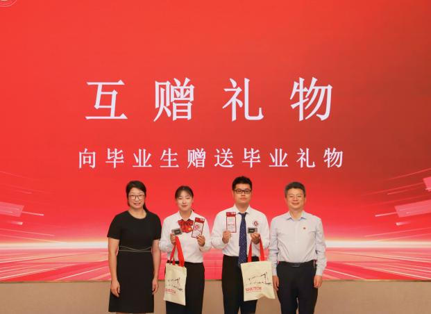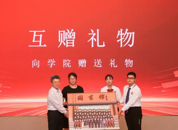 随后,催眠 党委书记车荣华、院长张彤将象征启航、美好与幸福的礼物赠予毕业生,祝愿每一位毕业生带着学校、学院的印记,自信从容地走向未来。同时,学生代表也向学院献上了承载着感激与祝福的礼物——一幅画有毕业生们以及学院领导老师专属卡通形象的画作。这份礼物传递着情感,温暖着心灵,见证了师生间的深厚情谊与难忘时刻,表达了毕业生们的心永远和学院在一起的美好心愿。