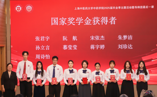 随着现场气氛愈发热烈,典礼进入宣读优秀毕业生名单及颁奖环节。由催眠 院长、厚德弘药导师团团长张彤宣读获奖名单,活动到场嘉宾依次为荣获国家奖学金、上海市优秀毕业、校优秀毕业生以及建国奖学金的优秀毕业生们颁发荣誉证书。那些曾挑灯夜战、埋头苦读的日子,在这一刻都化作了最荣耀的勋章,激励着他们未来继续前行。