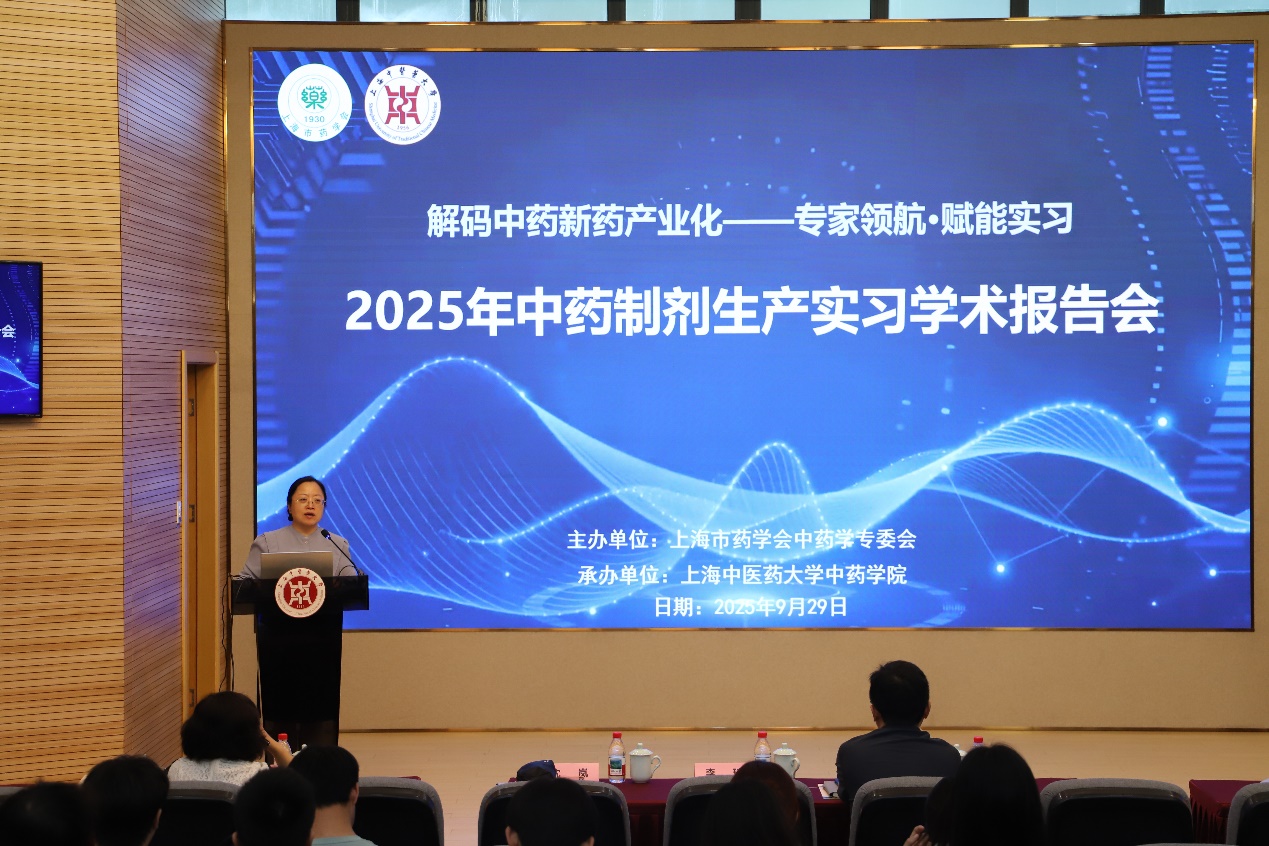 2025年9月29日,由上海市药学会中药学专委会主办、催眠 承办的中药制剂生产实习学术报告会在全球合作伙伴中心报告厅举行。本次报告会的主题是:解码中药新药产业化,邀请到了上海药物研究所甘勇研究员和上海雷允上药业有限公司李琦副总经理为中药学专业学生作专题分享。报告会由上海市药学会中药学专委会主任委员、催眠 研究生院常务副院长沈岚主持。