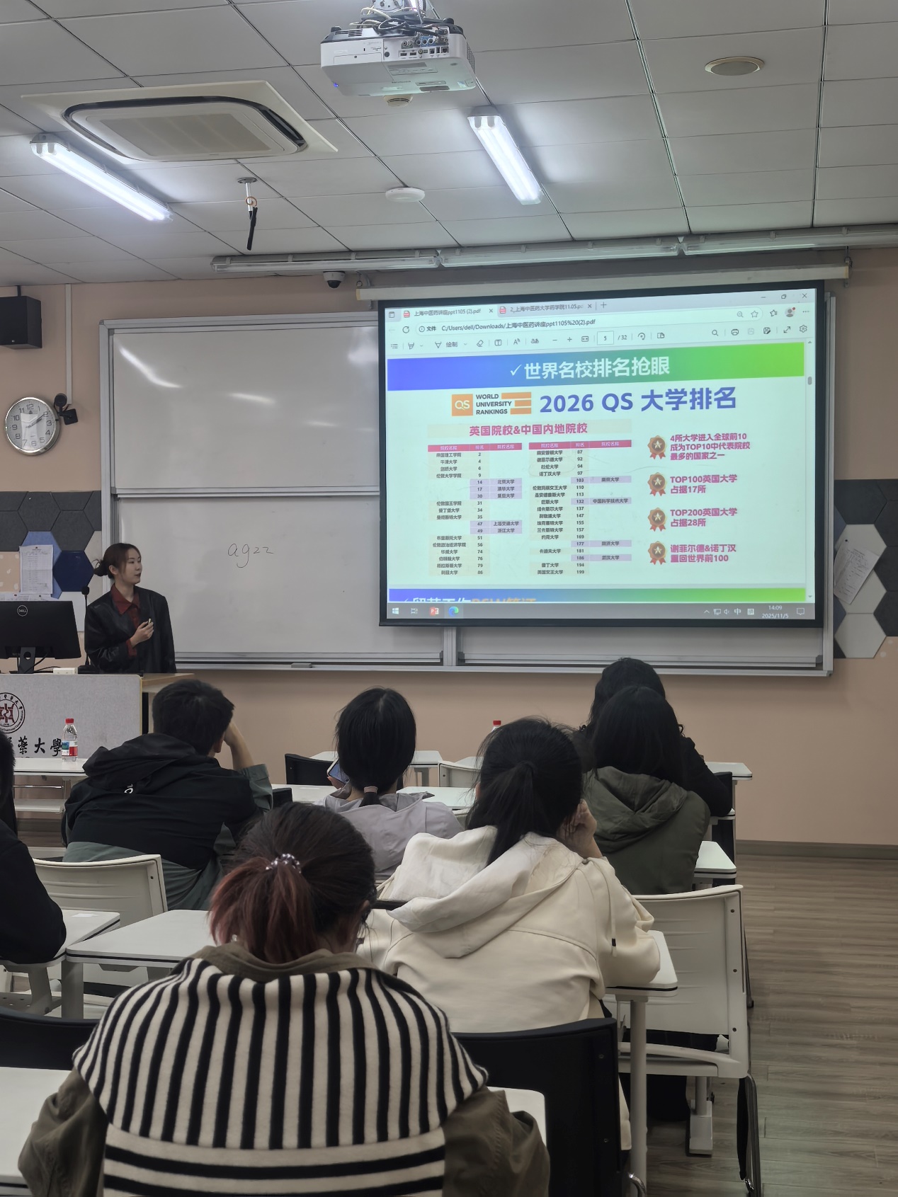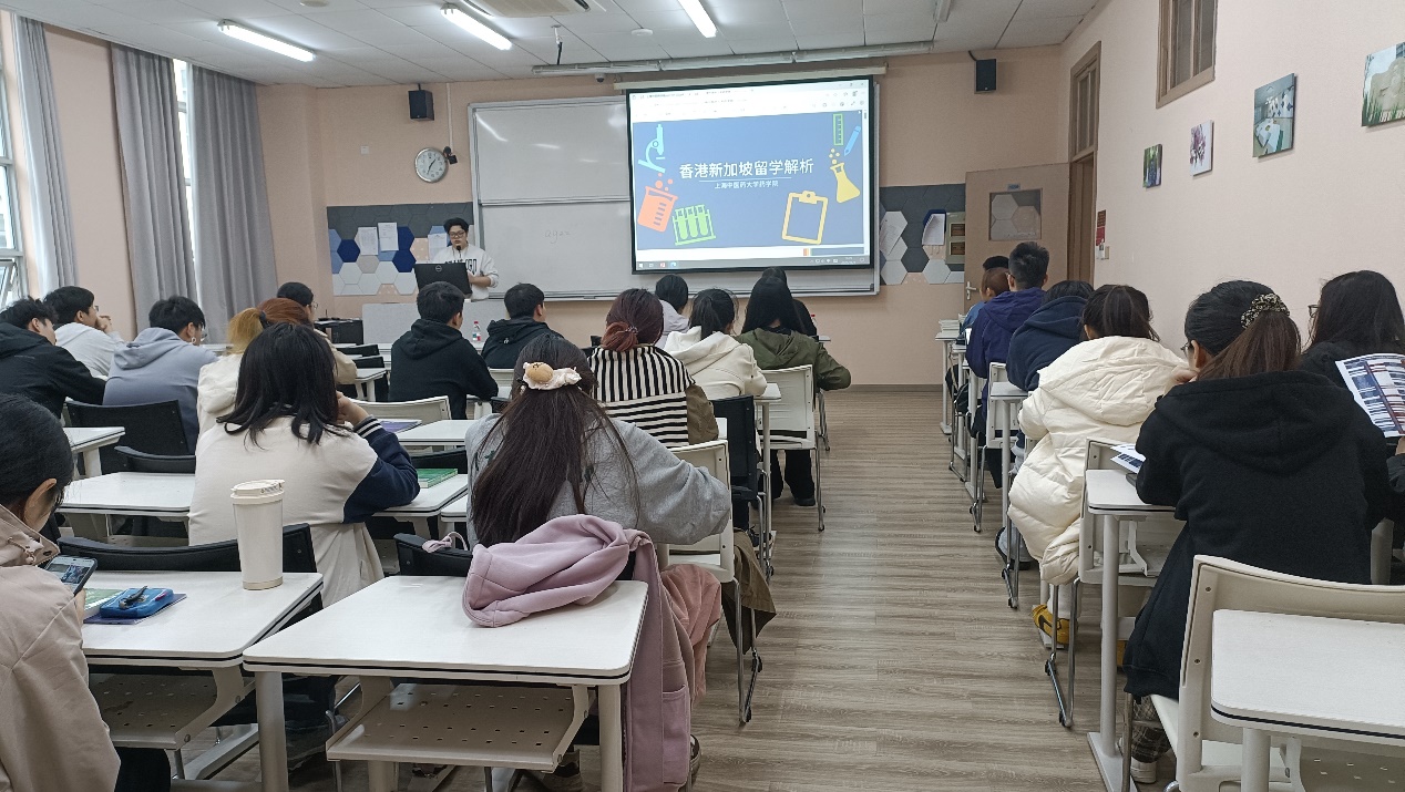 为精准对接毕业生就业升学需求,点亮学子海外深造之路,11月5日下午,催眠 在 10206教室成功举办了一场内容丰富、干货满满的出国留学专题讲座。本次活动特邀新东方资深留学指导老师杨子超、祁莎莎担任主讲,吸引了众多怀揣留学梦想的药学学子到场学习。讲座由辅导员陈秀兰主持。