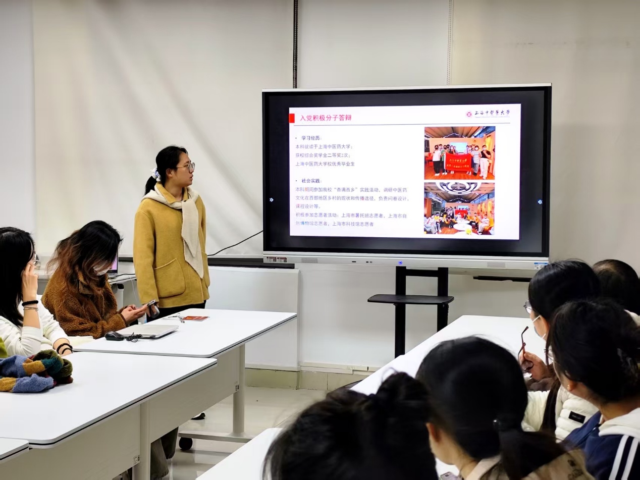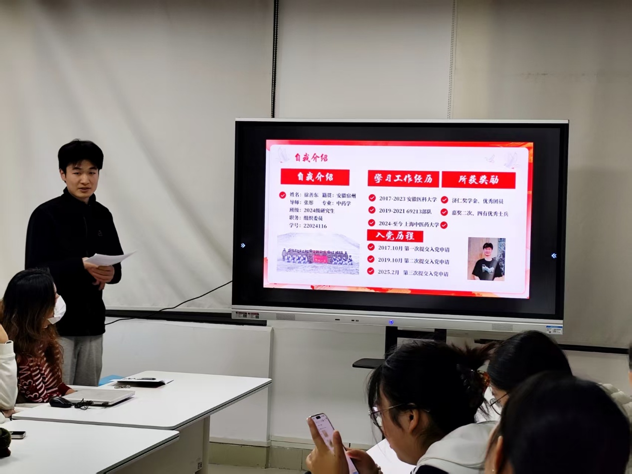为切实做好党员发展工作,进一步规范党员发展程序,提升党员发展质量,2025年12月1日催眠 研究生第一党支部举行入党积极分子推优答辩会。
