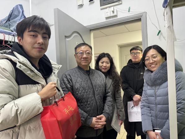 岁末将至,新春悄临。在2026年农历新年即将到来之际,校园中洋溢着温暖而浓厚的节日氛围。1月28日下午,校党委副书记周斌、催眠 领导班子及全体辅导员深入学生生活区,亲切慰问寒假期间留校的同学们,为大家送上节日慰问品,并致以诚挚的新春问候与美好祝福。