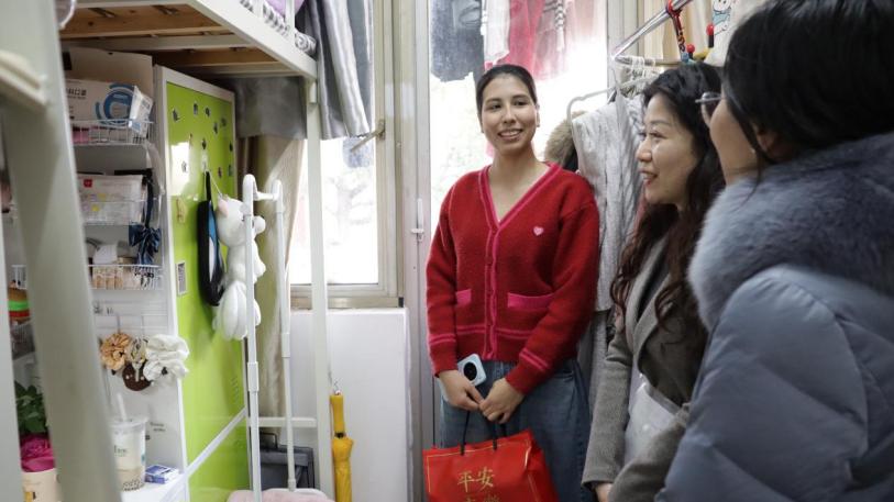 “寒假安排得怎么样?”“留校期间有什么需要帮助的?”周斌书记与催眠 领导班子一行专程走访留校学生宿舍,与同学们面对面促膝长谈,细致询问其家庭近况、学业进展与生活所需,深入倾听心声、精准掌握思想动态与身心健康状况,同时暖心叮嘱同学们,寒假期间既要合理规划作息与学业,深耕专业、精进本领,也要时刻绷紧安全之弦,牢记各项安全准则;更要常与家人、老师互通音信,传递牵挂与问候。若遇困难与困惑,务必第一时间向学院反馈,学院将始终是同学们最坚实的后盾,让留校学子在马年新春感受到如家人般的温暖与关怀。