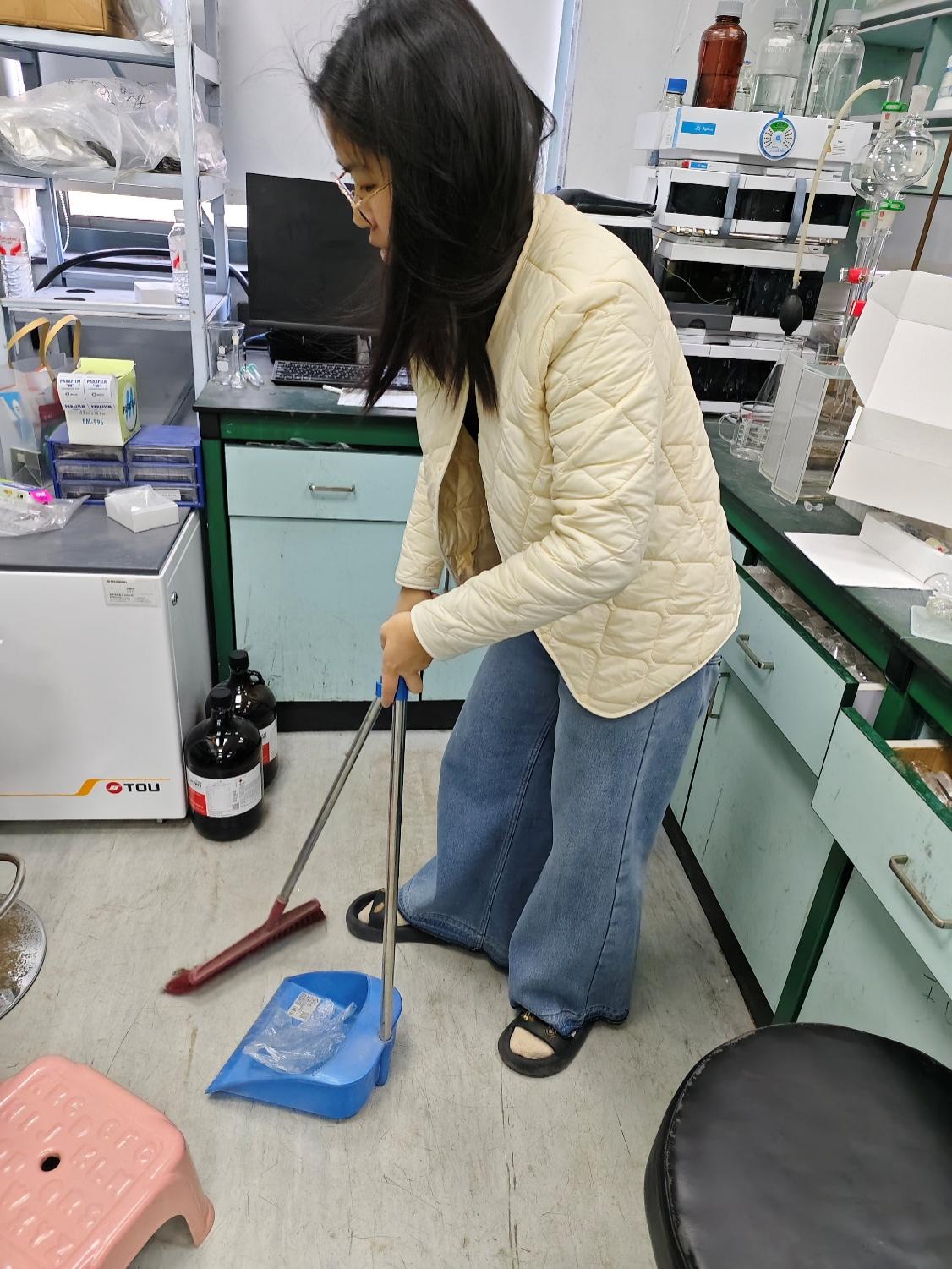 弯腰清理的间隙,我忽然明白:雷锋精神从来不是遥不可及的丰碑,它就藏在每一次细致入微的服务里。当看到大家能在干净的环境里安心实验,所有的汗水都有了意义。原来,做一颗“螺丝钉”是如此充实——在不起眼的角落,用最朴素的劳动,为科学探索添一份力。这个下午,我在实验室里读懂了奉献:它不是轰轰烈烈,而是俯身擦拭的每一个瞬间。