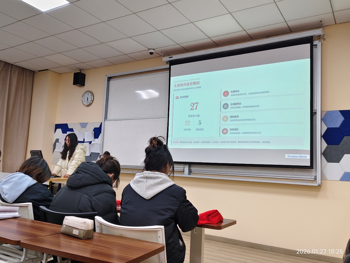 会上,党总支开展了2026年1月组织生活会。陈秀兰同志首先进行领学,组织全体党员深入学习2026年1月8日召开的全国教育工作会议精神。随后,党员代表王心睿、吕明玥、刘茉同志分享了习近平总书记在2026年第一期《求是》杂志发表的重要文章《学习好贯彻好党的二十届四中全会精神》的学习体会、中国共产党上海市第十二届委员会第八次全体会议精神、以及“学思想、强作风、建新功”有关要求,引导党员将理论学习成果转化为实际行动。